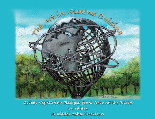 Artist Rikki Asher started her vegetarian cookbook project at the beginning of the pandemic by simply walking around her Queens, New York neighborhood, asking people if they’d like to participate. Now in its second edition, The Art in Queens Cuisine features recipes from Bulgarian, Indian, Italian, Hungarian, Filipino, Romanian, Russian and Thai cuisines. [QNS, Rikk Asher]